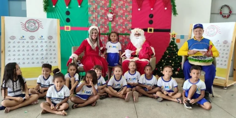 “Querido Papai Noel, gostaria de ganhar uma linda sereia” – o trecho faz parte da cartinha da aluna Heloísa Souza Santos destinada ao Bom Velhinho. Como a pequena Heloísa, várias outras crianças atendidas pelo Centro Municipal de Educação Infantil (Cmei) Araras em Palmas puderam entregar pessoalmente suas cartas durante a abertura da campanha Papai Noel dos Correios 2025, que aconteceu na manhã desta sexta-feira, 7, num momento festivo na unidade educacional.