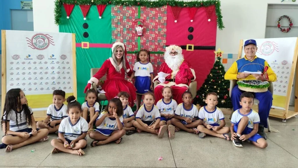 “Querido Papai Noel, gostaria de ganhar uma linda sereia” – o trecho faz parte da cartinha da aluna Heloísa Souza Santos destinada ao Bom Velhinho. Como a pequena Heloísa, várias outras crianças atendidas pelo Centro Municipal de Educação Infantil (Cmei) Araras em Palmas puderam entregar pessoalmente suas cartas durante a abertura da campanha Papai Noel dos Correios 2025, que aconteceu na manhã desta sexta-feira, 7, num momento festivo na unidade educacional.
