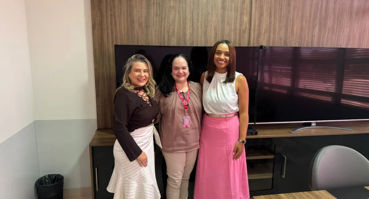 A secretária de Estado da Mulher, Larissa Rosenda, e a assessora de gabinete, Jandra, participaram da reunião com o objetivo de articular futuras parcerias voltadas à saúde da mulher, com previsão de execução a partir de 2026.