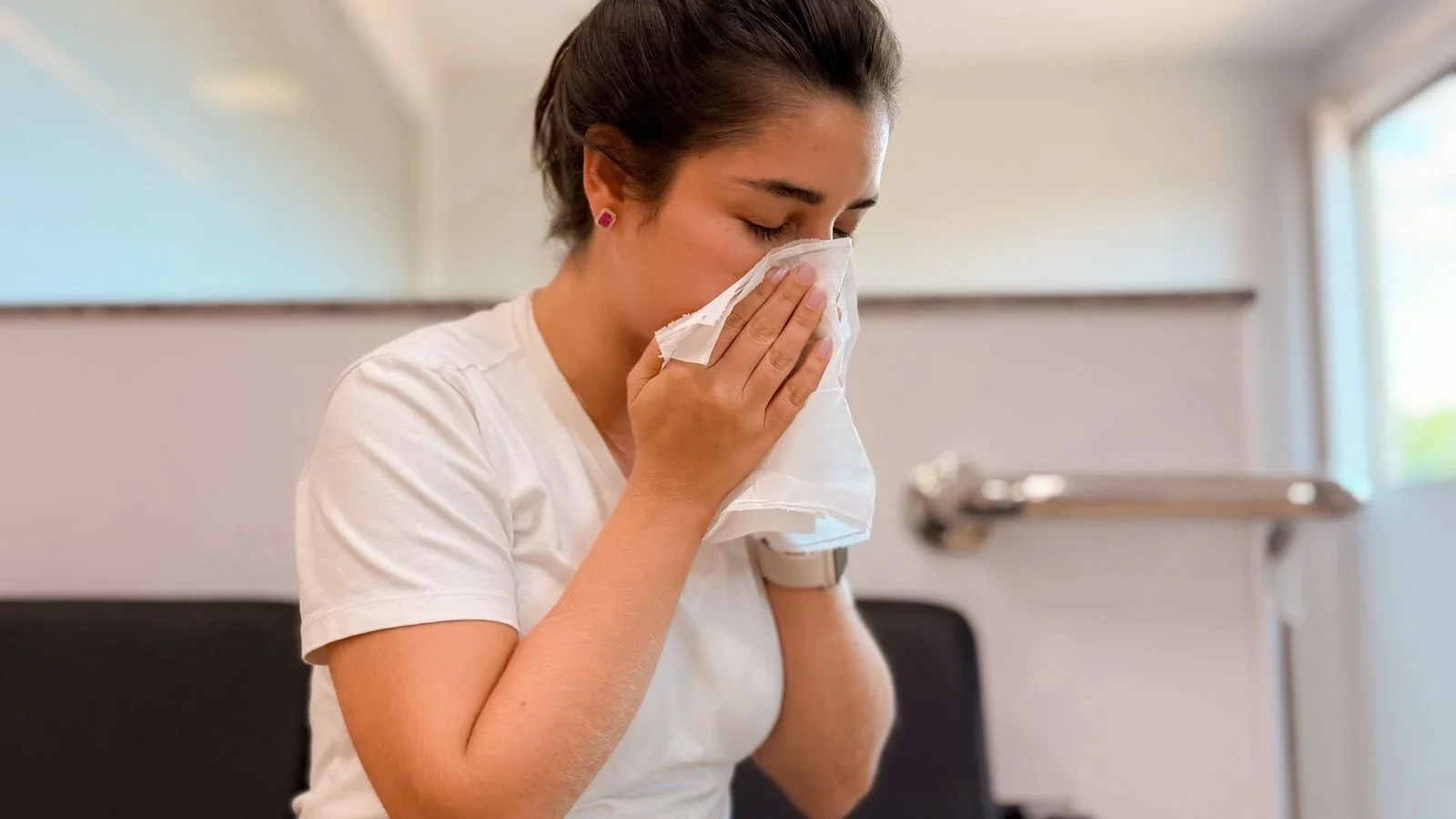 Basta cruzar com alguém infectado para pegar.O risco de contágio aumenta em ambientes fechados, mal ventilados e com convívio frequente com o doente.
