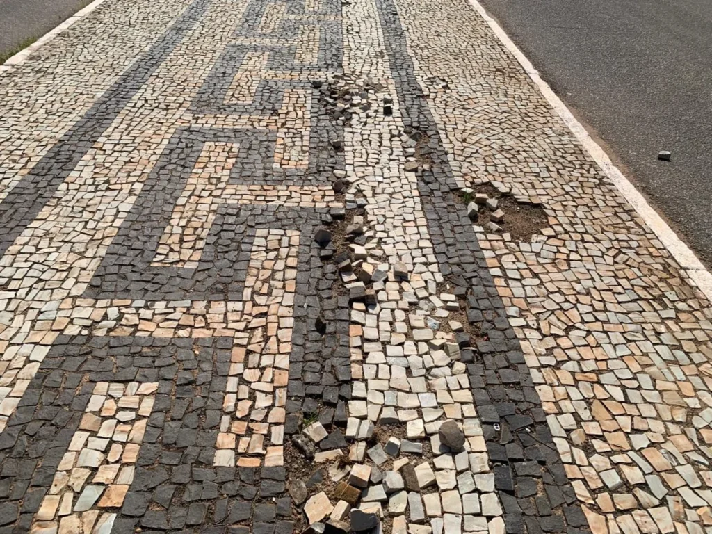 Em muitos trechos, como próximo ao Ponto de Apoio, elas estão soltando, algo que além de prejudicar o visual prejudica a circulação das pessoas.