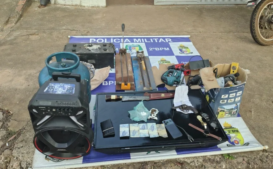 Com o suspeito de 48 anos, os policiais ainda identificaram diversos objetos que seriam de origem de furto ou receptação, incluindo duas televisões, um tablet, um botijão de gás e várias máquinas e objetos de construção civil, além de cinco relógios e uma caixa de som. Uma motocicleta Honda/CG 150 Titan ES também foi apresentada na Delegacia de Polícia Civil (DP).