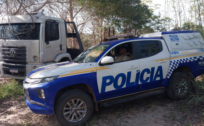 A Polícia Militar do Tocantins (PMTO) localizou um caminhão prancha com restrição de roubo no distrito de Cicilândia, município de Palmeirante, nesta quarta-feira, 15. O veículo foi encontrado abandonado em uma área de plantio de eucalipto, após informações repassadas por trabalhadores da localidade.