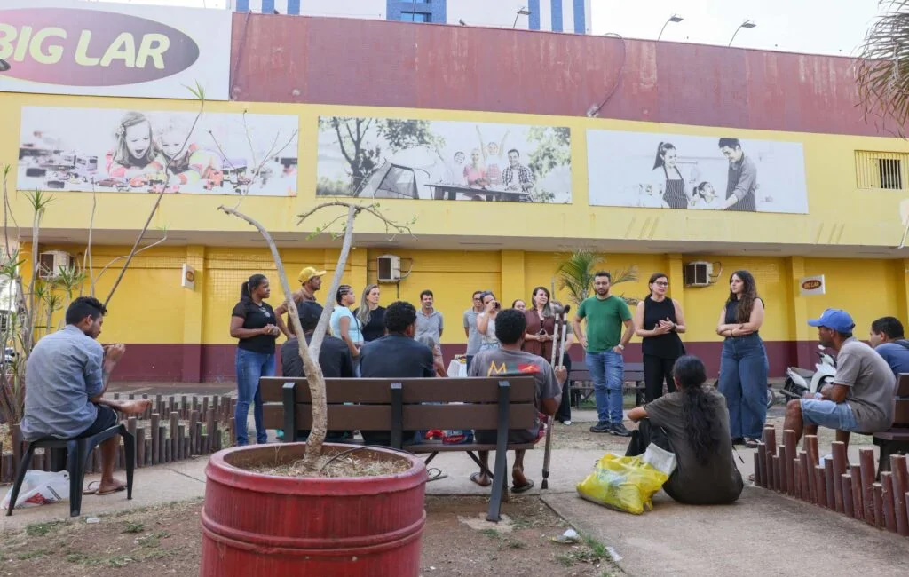 A Prefeitura de Palmas, por meio da Secretaria Municipal de Ação Social e da Mulher, em conjunto com estudantes de Psicologia da UniCatólica, realizou na tarde desta sexta-feira,24, uma roda de conversa e escuta com pessoas em situação de rua e um lanche especial em área comercial da Avenida JK. O trabalho que é realizado rotineiramente pela equipe do Serviço de Abordagem Social do Centro de Referência Especializado de Assistência Social (Creas).