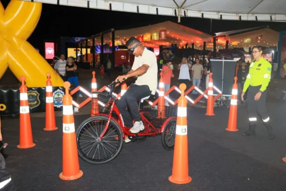 Durante o 10º Palmas Capital da Fé, realizado entre sábado, 14, e terça-feira, 17, equipes da Secretaria Executiva de Trânsito e da Mobilidade Urbana estiveram presentes no estande montado no local, onde foram realizadas atividades lúdicas e interativas com os foliões, a exemplo do circuito com óculos simulador de embriaguez.