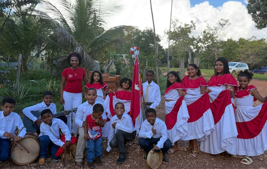 As apresentações aconteceram durante reunião ordinária de moradores do quilombo. Na ocasião, a pedagoga Maria Lívia Rodrigues Valadares, mestre em Educação e doutoranda em Ciências do Ambiente pela Universidade Federal do Tocantins (UFT), idealizadora da ação, falou sobre o projeto. “O que queremos é que as crianças vivam a cultura do quilombo no dia a dia, transformando o terreiro e a roça em lugares de aprender. Aqui, o saber não vem apenas de páginas distantes, mas nasce do respeito por quem veio antes e do orgulho de pisar e cuidar deste chão”, explicou a educadora, que coordena o projeto juntamente com a presidente da associação da comunidade, Miguelanes Crisóstomo.