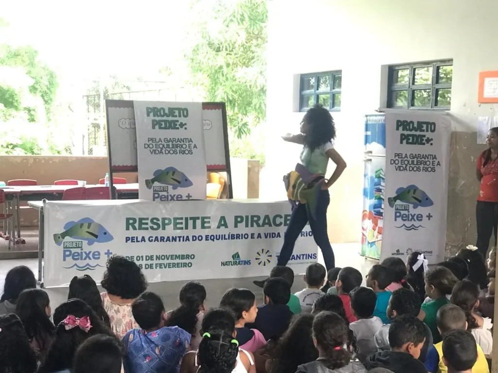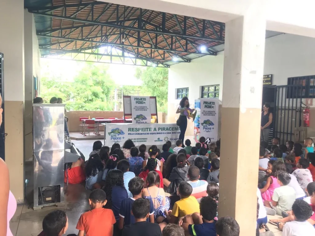 A Secretaria Municipal de Meio Ambiente, em parceria com o Naturatins, realizou nesta terça-feira (24), por meio do Projeto Peixe +, uma ação educativa na Escola Municipal de Ensino Fundamental Brigadeiro Lísias Rodrigues, em parceria com a Secretaria Municipal de Educação.
