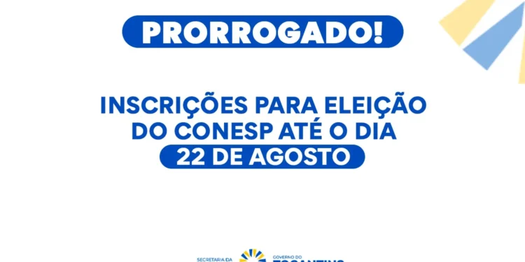 A Comissão Especial Eleitoral do Conselho de Segurança Pública do Tocantins (Conesp/TO) prorrogou o prazo de inscrição para a eleição. Agora, os interessados têm até a próxima quarta-feira, 22 de agosto, para manifestarem vontade de concorrer no processo eleitoral.