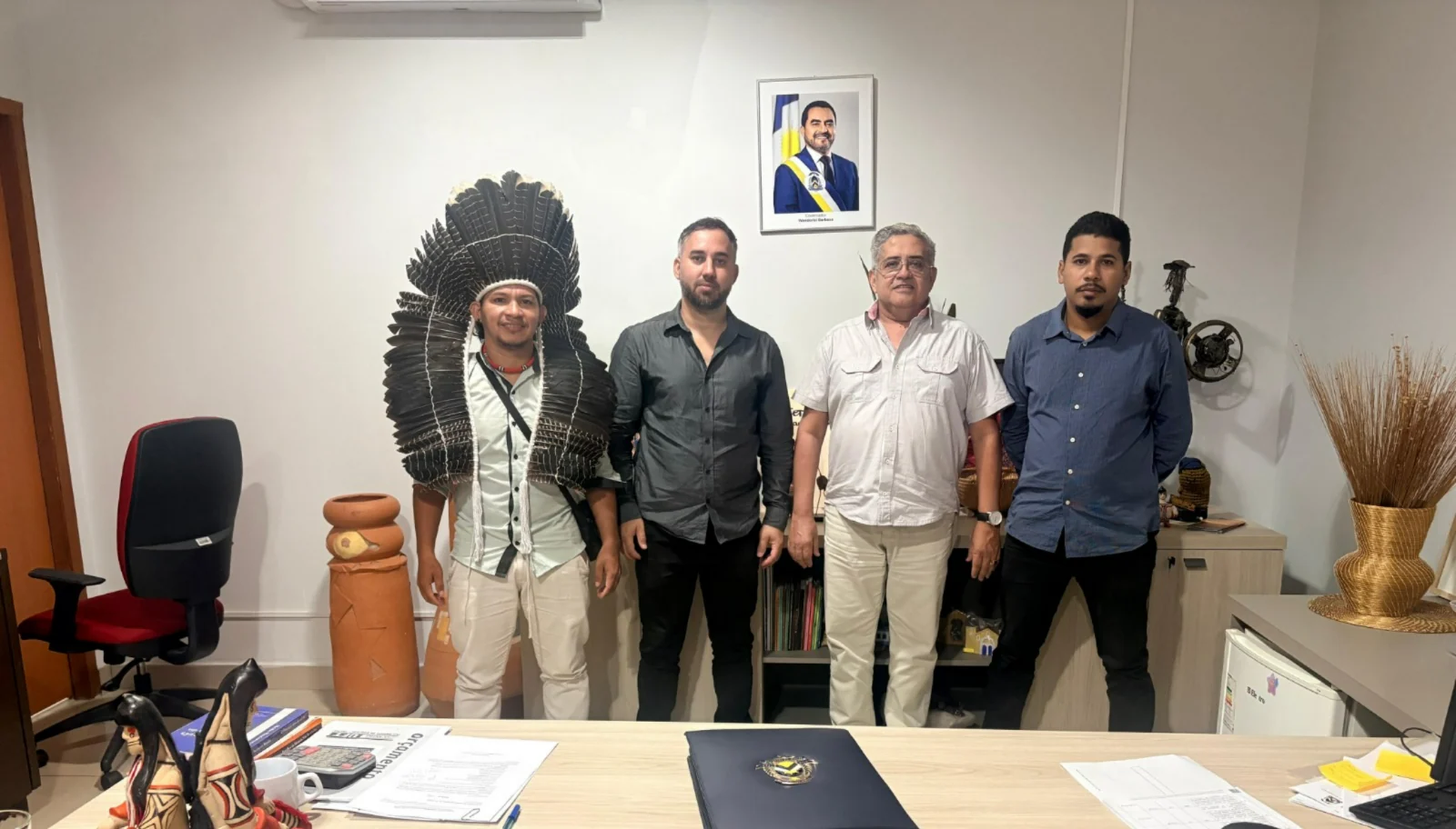 A visita também contou com a presença dos produtores Leandro de Alcântara e Romário Srowasde Xerente, que também integra o elenco do documentário.