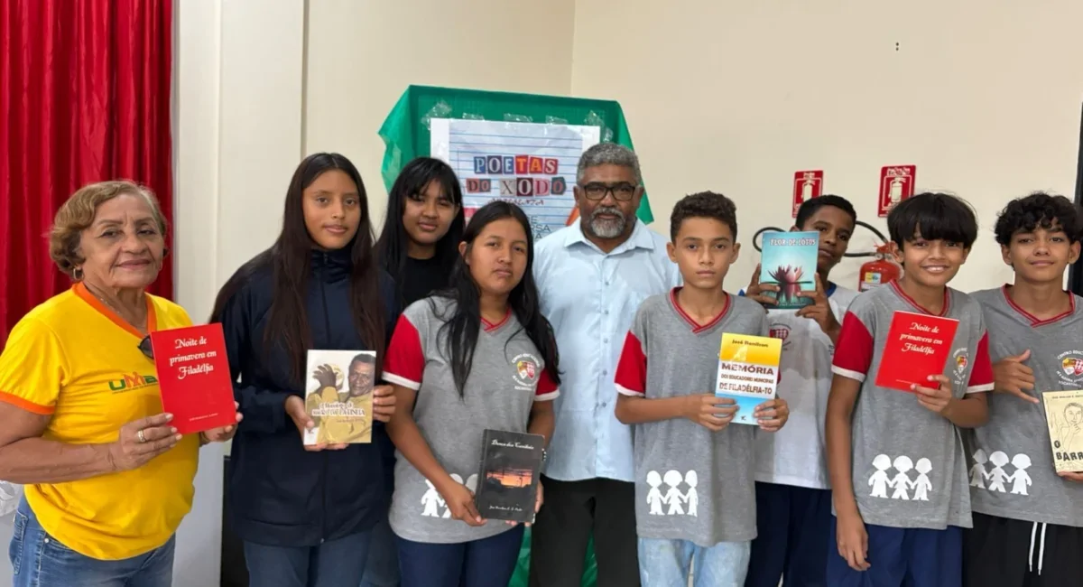Tocantinense de Filadélfia, no norte do estado, o escritor e professor José Benilson foi o convidado especial da roda de conversa literária promovida pelo Projeto Poetas do Xodó, coordenado pelo professor André Goveia, do CEFYA – Centro Educacional Fé e Alegria Frei Antônio, em Tocantínia. O evento foi realizado na tarde desta quarta-feira, 06 de novembro, e reuniu alunos, professores e admiradores da literatura regional, fortalecendo ainda mais o vínculo entre a escrita, identidade cultural e protagonismo estudantil.