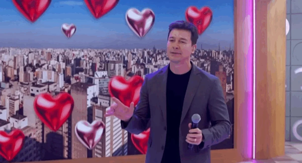 No programa, Rodrigo também foi surpreendido pela presença da esposa no palco e se emocionou ao vê-la falando sobre a relação dos dois. O apresentador relembrou o momento que a conheceu pela primeira vez e disse que se encantou por ela à primeira vista.