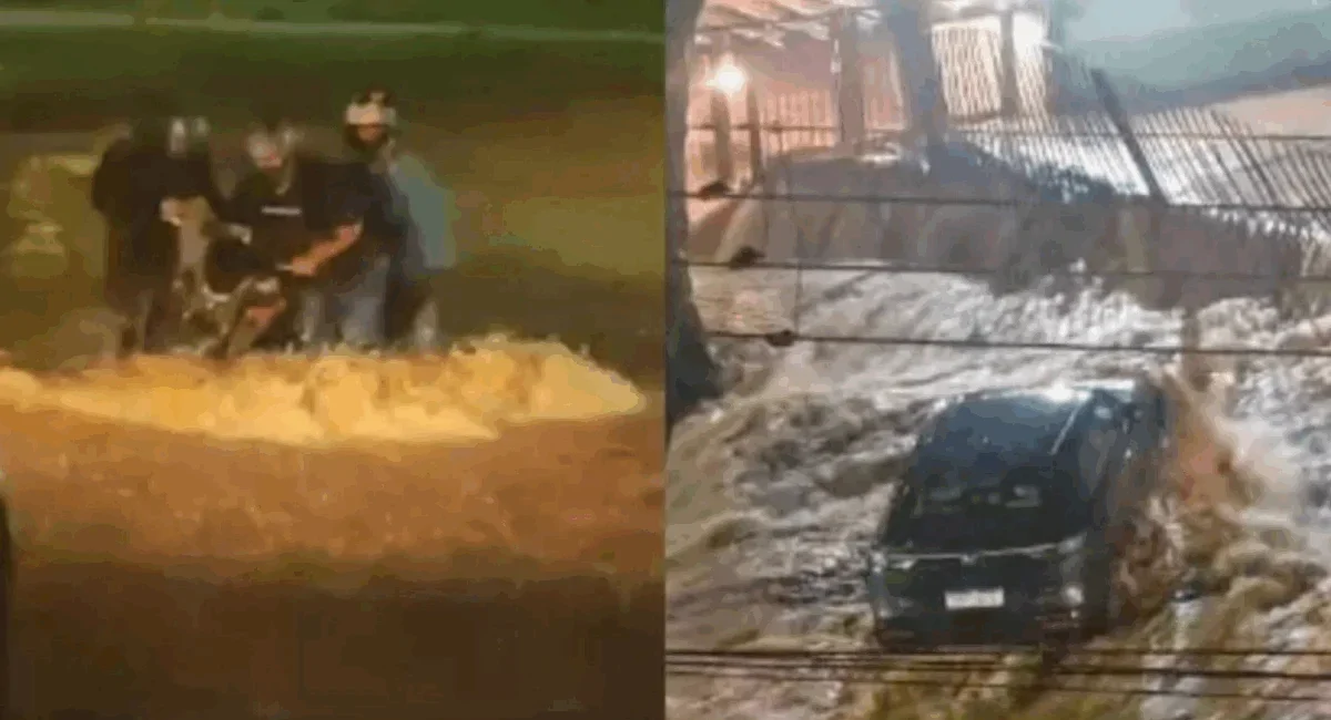 Temporal arrasta carros e motociclista é resgatado da enxurrada em MS
