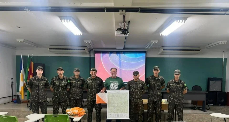 Durante a palestra, foi apresentada, de forma introdutória, a modalidade esportiva Corrida de Orientação, com destaque para aspectos como uso da bússola, leitura de mapas e cartas, interpretação do terreno e técnicas de aferição de passos duplos para determinação de distâncias.