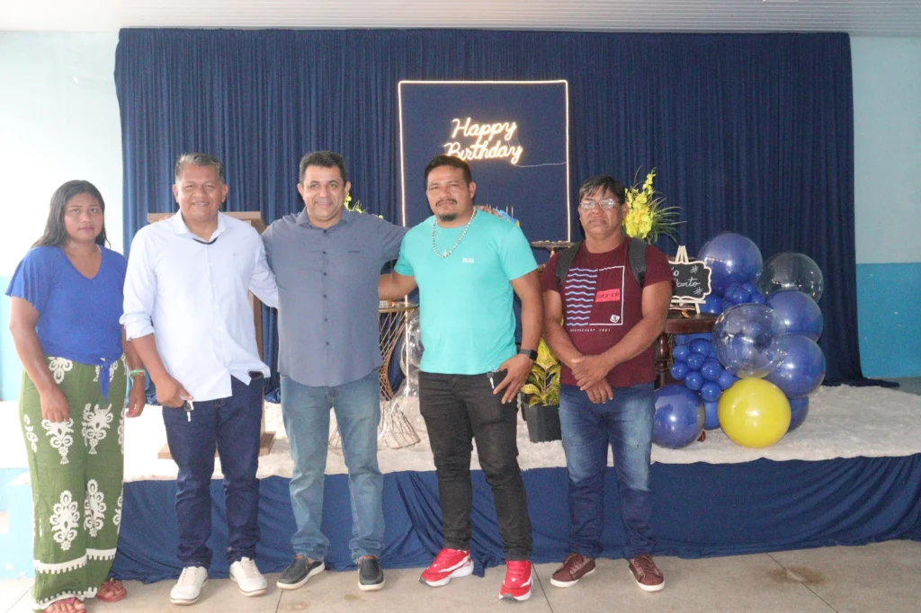 Na chegada, o prefeito acompanhado da família, foi recebido ao som de saxofone e o canto de parabéns emocionando o chefe do executivo.