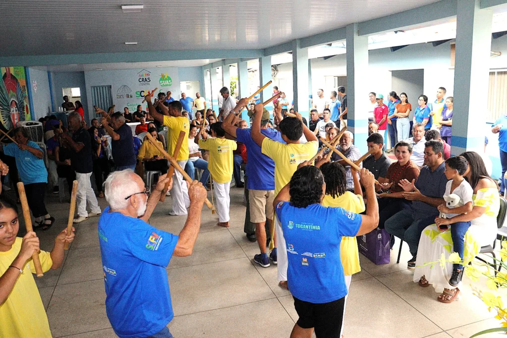 Em comemoração ao aniversário, o grupo do programa Serviço de Convivência e Fortalecimento de Vínculos (SCFV) Bem Viver e Capoeira iniciaram as homenagens com apresentação cultural.