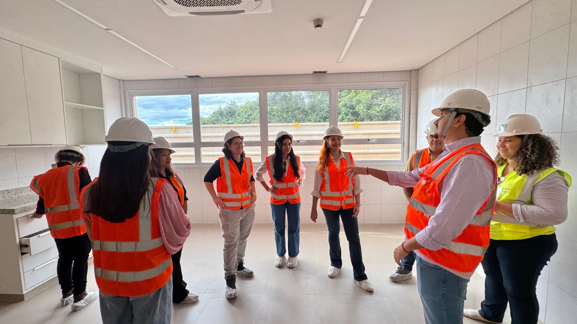Segundo o gerente de Implementação e Projetos da Opy Health, Vinícius David Duailibi, a obra segue dentro do cronograma previsto. “Atualmente, estamos com cerca de 25% de avanço. Os três prédios anexos, a casa da gestante, o ambulatório e o restaurante, estão em fase final de acabamento. A casa da gestante contará com 20 leitos para acolher mulheres do interior, enquanto o ambulatório terá 12 consultórios para atendimento especializado. Hoje contamos com aproximadamente 300 trabalhadores atuando na obra, que segue em ritmo acelerado, com previsão de conclusão para março de 2027”, explicou.