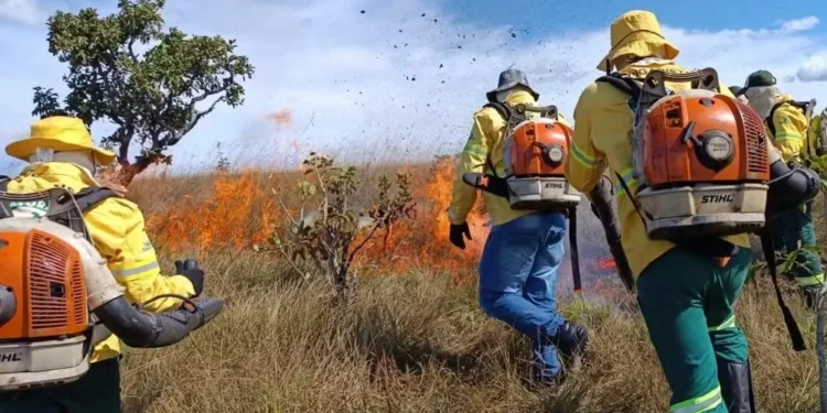 O fogo se concentra na Mata do Mamão e segundo as equipes, ele já queimou 64 quilômetros quadrados de área. Com apoio de satélite, as equipes monitoram o incêndio em tempo real.