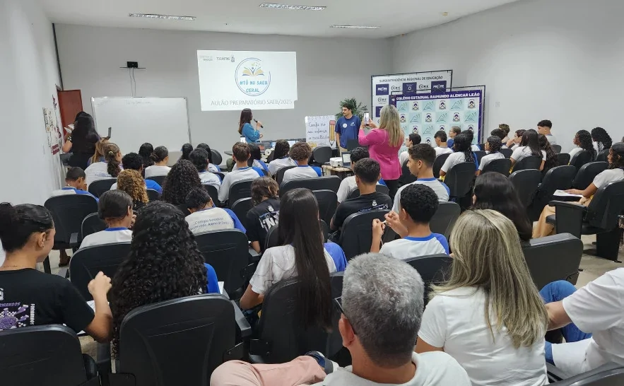 Voltado para a formação, integração e motivação em virtude da o Colégio Estadual Raimundo Alencar Leão, de Guaraí, realizou o aulão #TonoSAEBCeral, com as turmas do nono ano, na sexta-feira, 17. Os reforços, com dinâmica da equipe multiprofissional e Aula interativa (app Numa Ceral), das áreas de Matemática e Linguagens criando um clima de engajamento e entusiasmo em torno da avaliação.