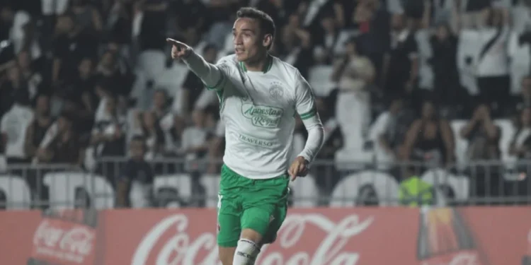 Nuno Moreira lança Puma pela direita. Ele cruzou para o meio da área e achou Spinelli. O centroavante desviou levemente e a bola ficou com Brenner. Com o gol aberto, ele só teve o trabalho de empurrar para o gol.