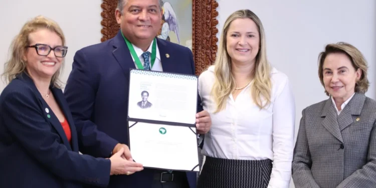 Durante a agenda, o senador foi homenageado pela Associação Nacional das Defensoras e Defensores Públicos Federais (ANADEF) com a Grã-Medalha Carolina Maria de Jesus, concedida a personalidades que contribuem para o fortalecimento da Defensoria Pública e para a ampliação do acesso à Justiça no Brasil.
